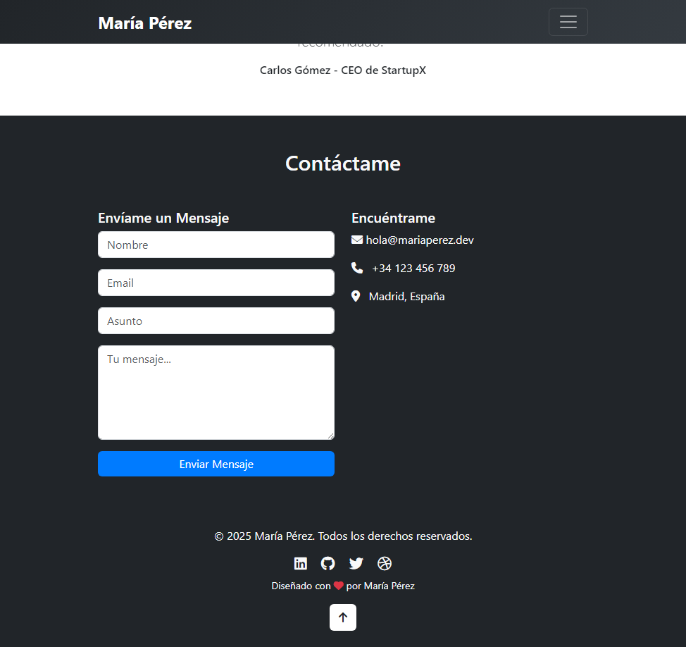 ✅ Detalles que venden: Botón "Volver arriba", footer con toque personal y animaciones sutiles en cada sección.