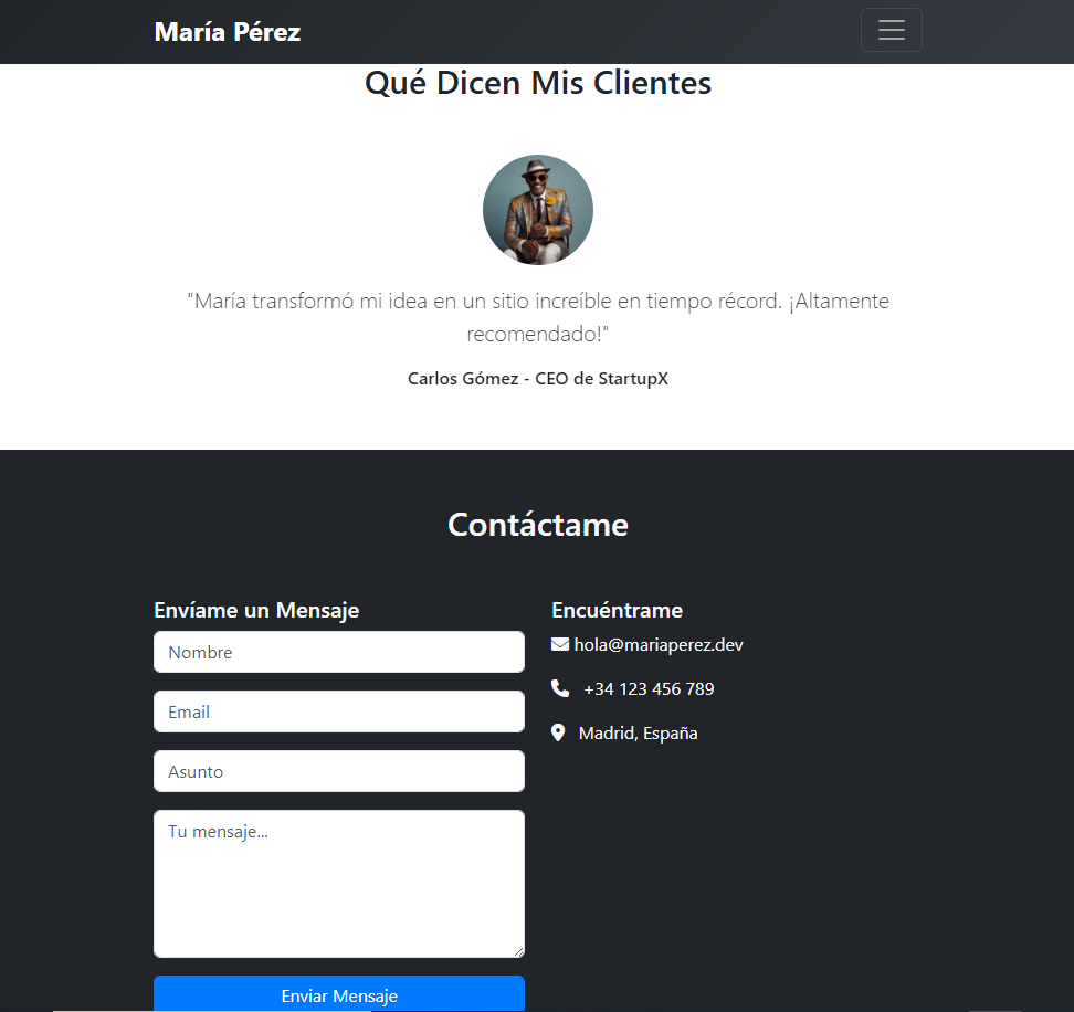 ✅ Formulario de contacto profesional: Campos ampliados, listo para integrarse con herramientas como EmailJS.
