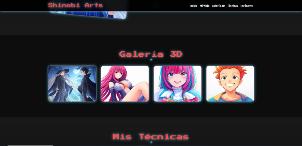 • Galería 3D Interactiva: Tarjetas inclinables con efecto tilt y hover dinámico para mostrar tus obras con un impacto visual increible.