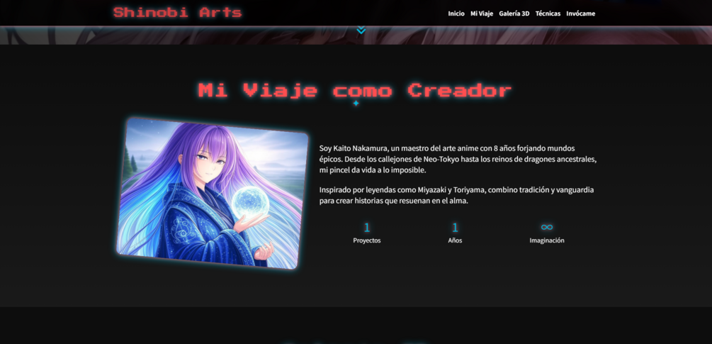 - ✅Galería 3D Interactiva: Tarjetas inclinables con efecto tilt y hover dinámico para mostrar tus obras con un impacto visual increible.
