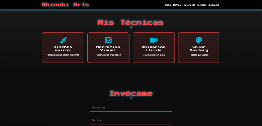 - ✅Animaciones Espectaculares: Partículas animadas en el fondo (personalizables), transiciones suaves, efectos 3D en la galería y un formulario con animación de "energía" al enviar.
