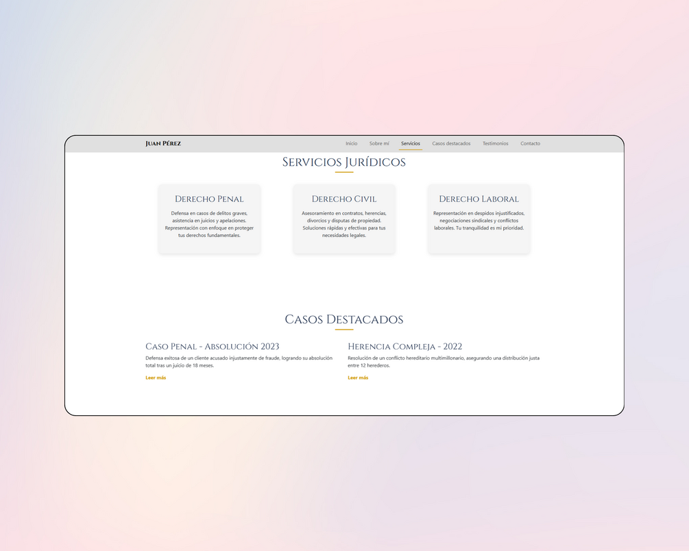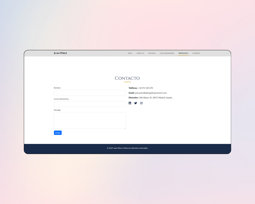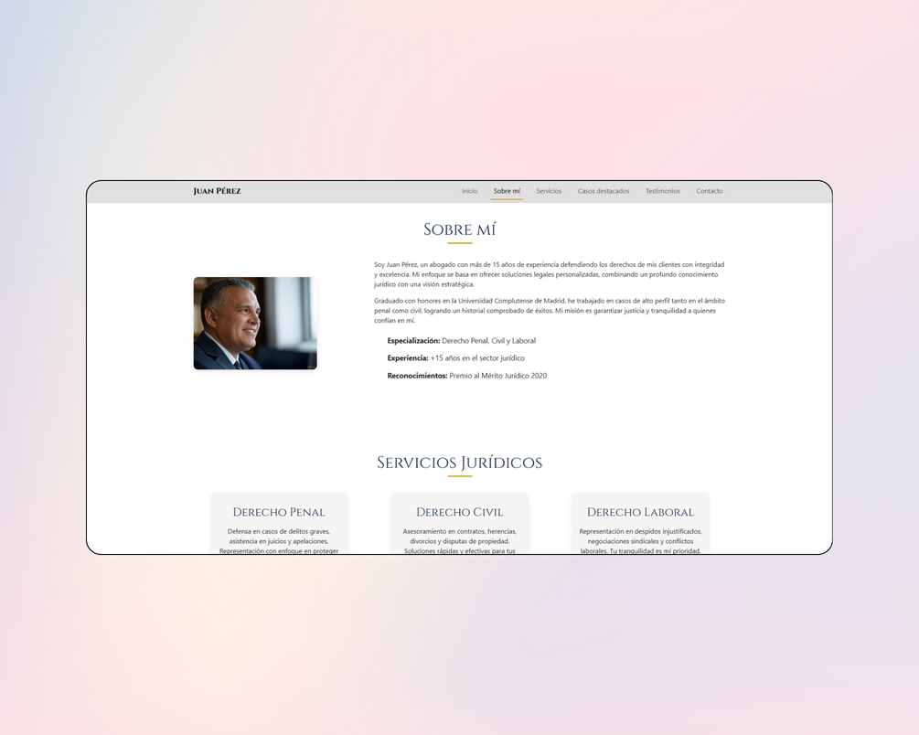 • ✅ Diseño distintivo y profesional: Una estética sofisticada con animaciones sutiles que captan la atención sin sacrificar la seriedad que tu profesión exige.