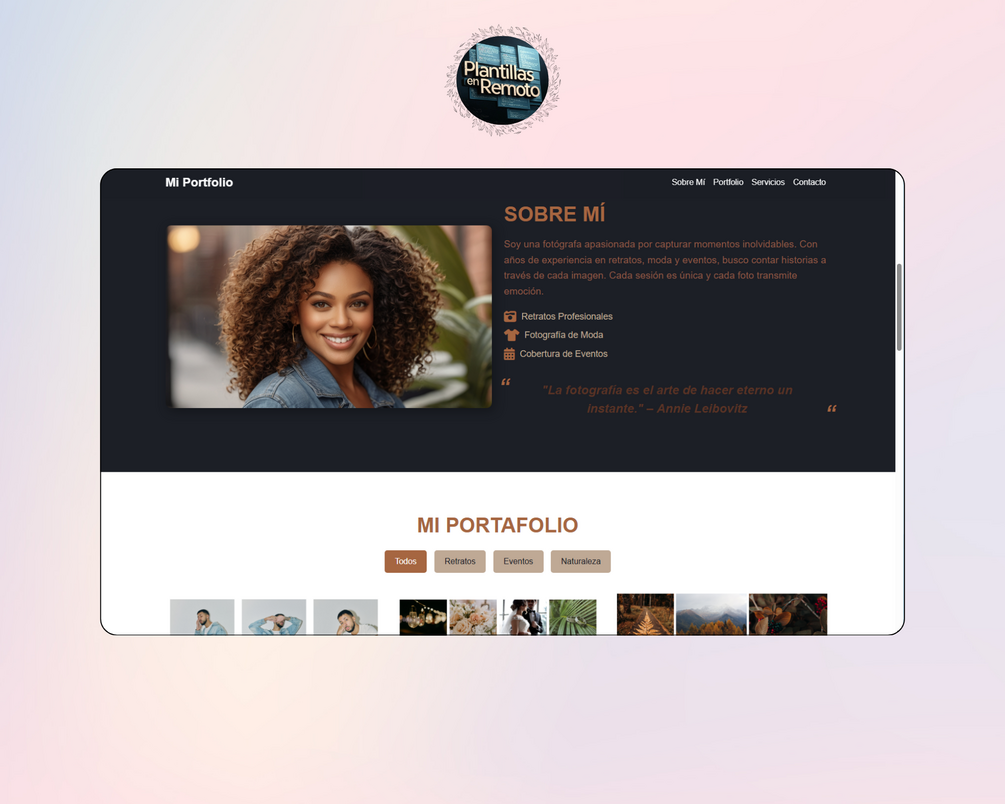 Transforma tu visión en realidad con este portfolio premium diseñado para una fotógrafa de eventos. Moderno, responsivo y visualmente impactante, incluye: