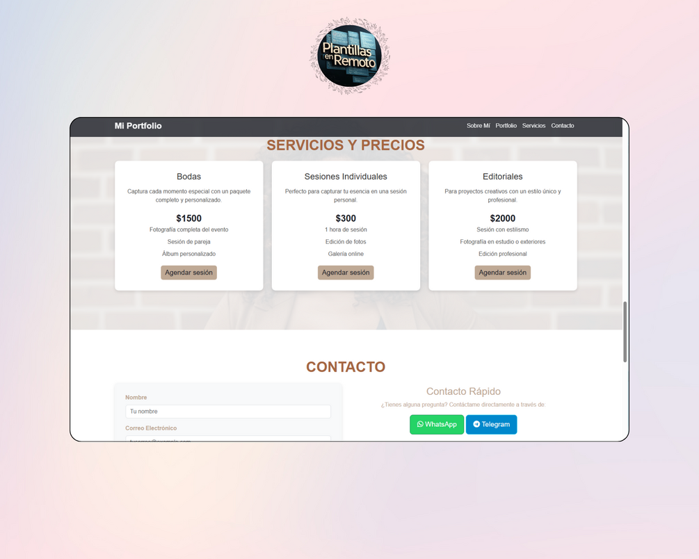 • ✅ Contenido Realista: Secciones completas (Hero, Sobre Mí, Servicios, Portafolio, Testimonios, Contacto) con texto de muestra profesional.
