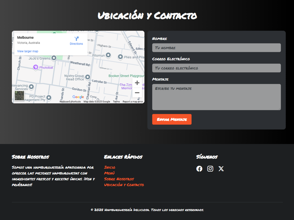• Ubicación y contacto: Integración con Google Maps y formulario de contacto.