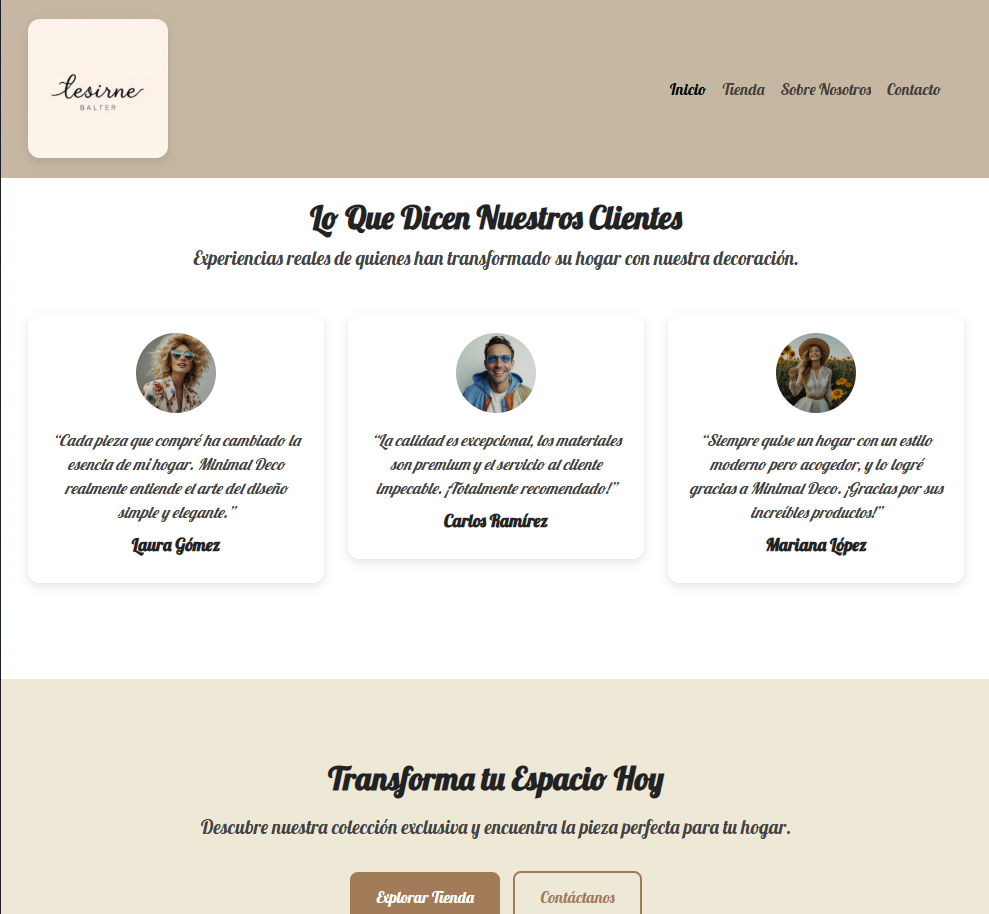- Inicio Atractivo: Diseño visual impactante con imágenes de alta calidad y navegación intuitiva.