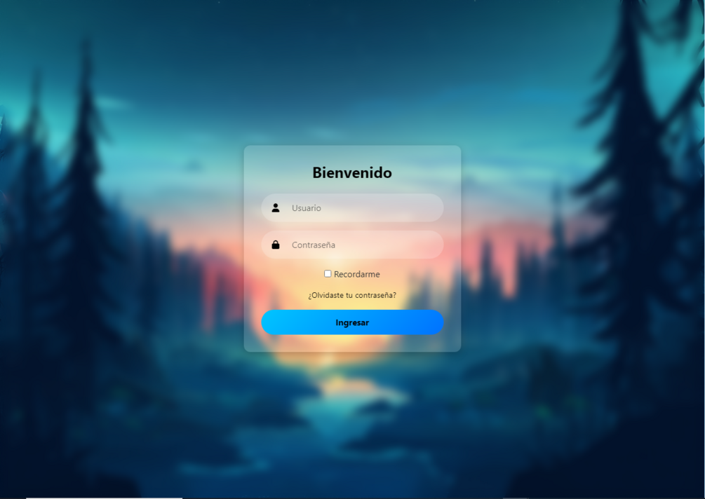 Diseño FrontEnd con Bootstrap5 de un LogIn con tema transparente y efectos de movimiento de entrada fade-in suave, moderno y responsivo.