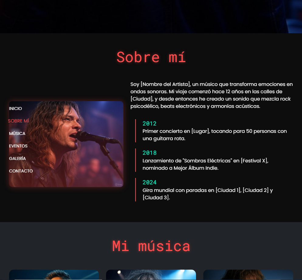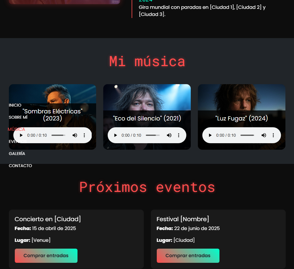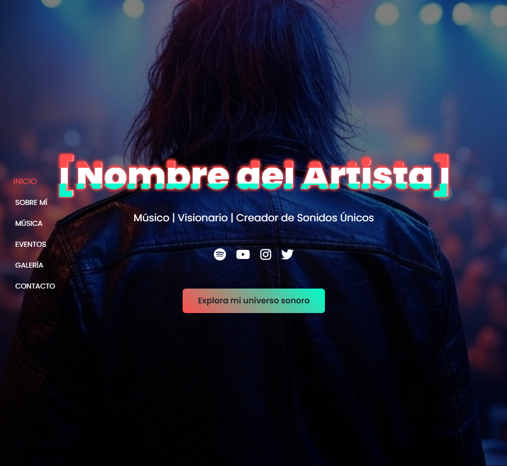 • ✅Diseño impactante: Estilo vibrante con efectos parallax y secciones dinámicas que capturan la esencia de tu música.