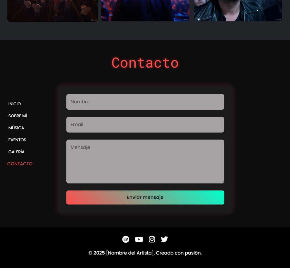 • ✅Enlaces a redes sociales (Spotify, YouTube, Instagram, Twitter) integrados.